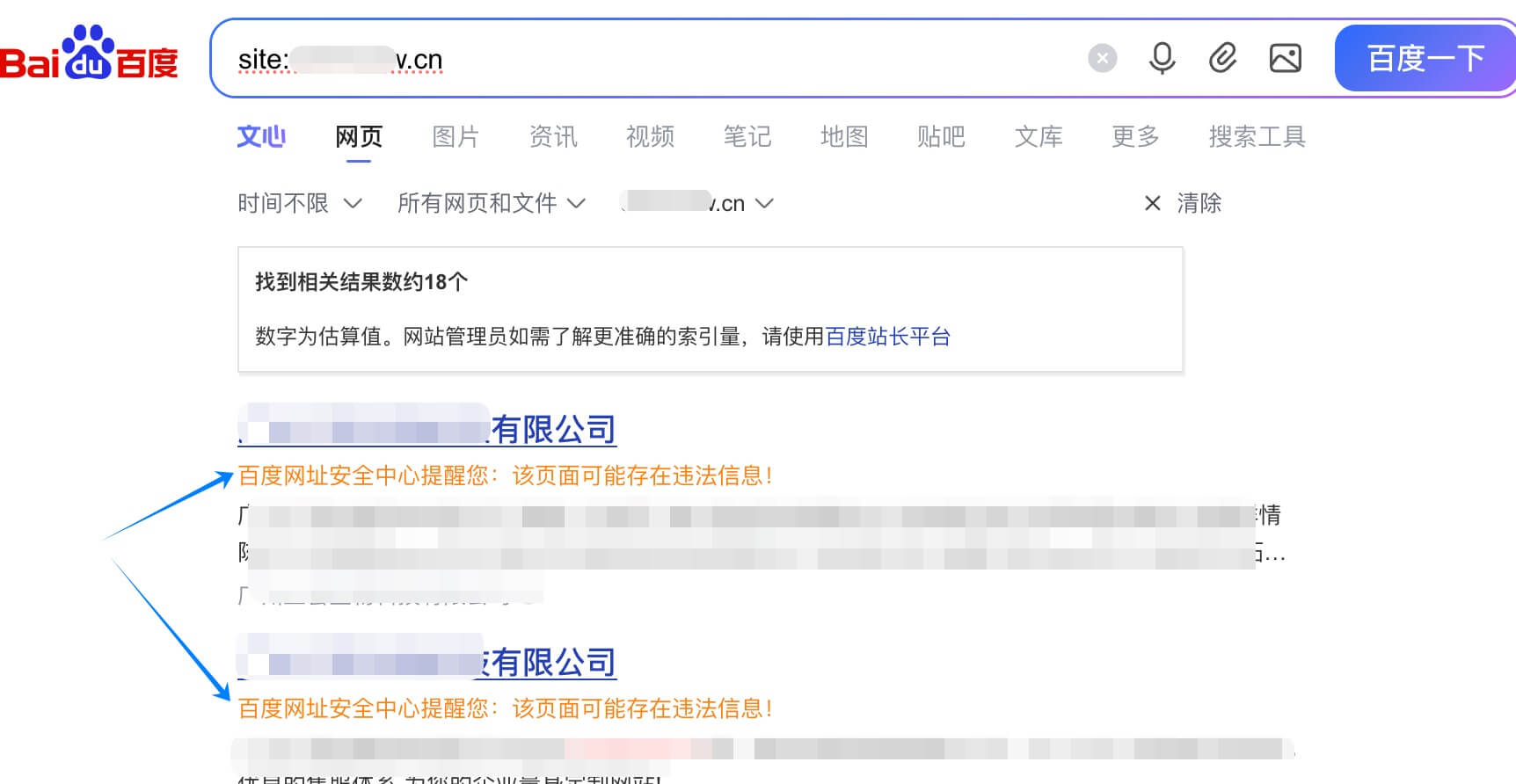 1、功能介绍自动识别百度site搜索结果页是否出现百度官方提醒:百度网址安全中心提醒您:该页面可能存在违法信息!